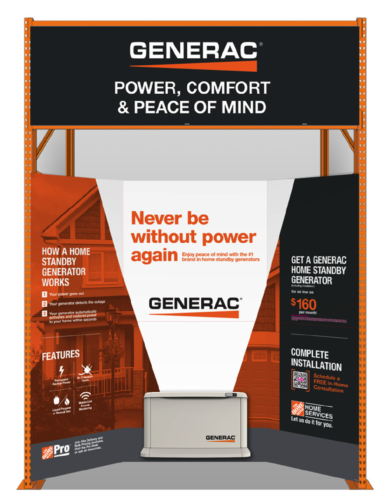 To drive awareness and adoption of Home Services, Home Depot sought to pair Generac standby generators with in‑house installation offerings, consolidating messaging into a high‑visibility endcap in select markets.