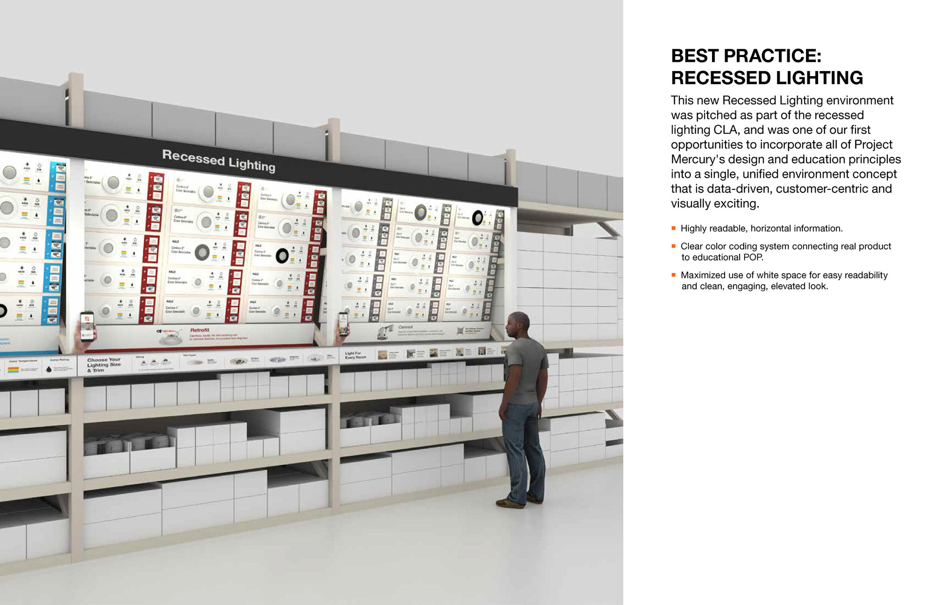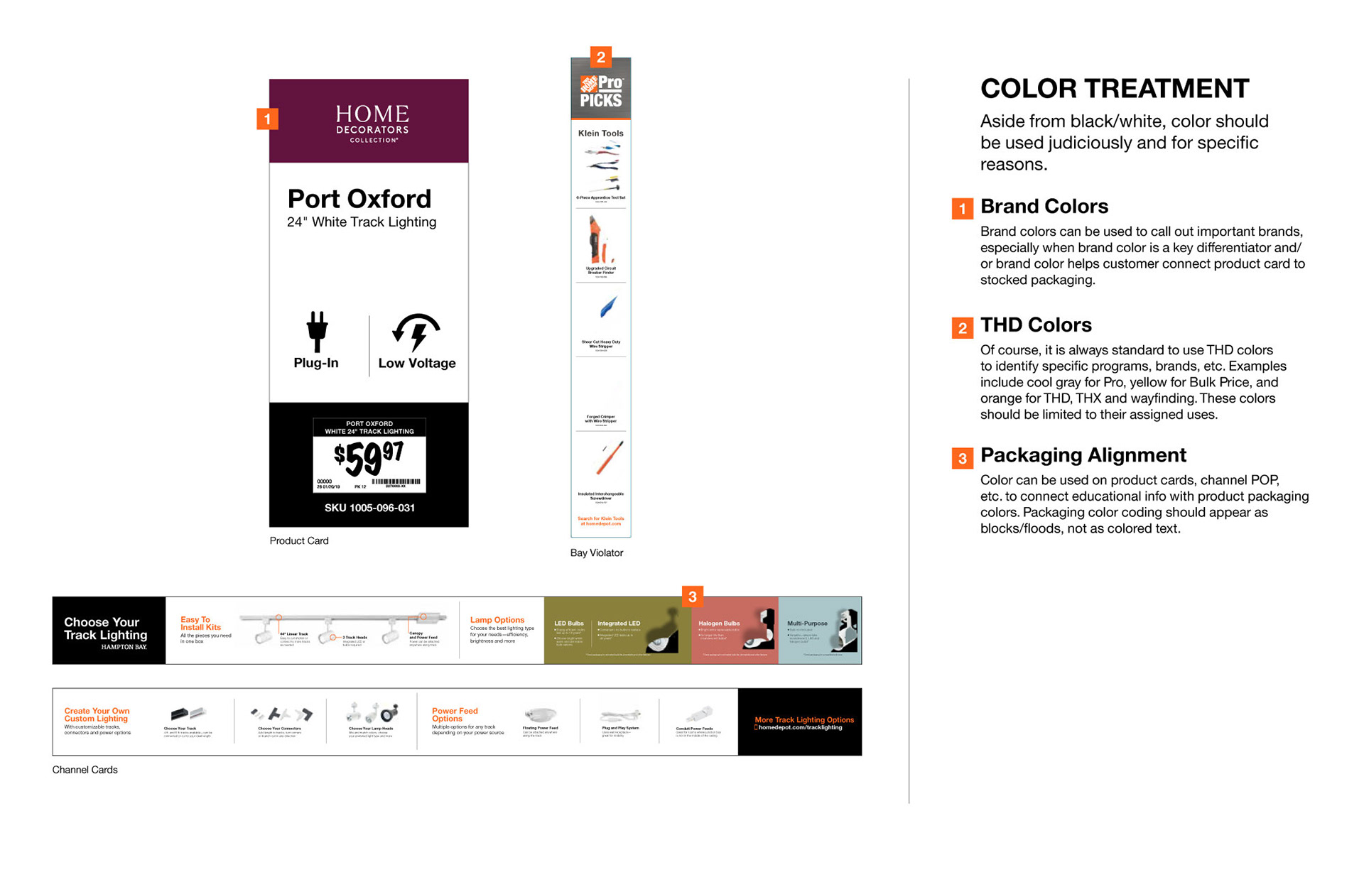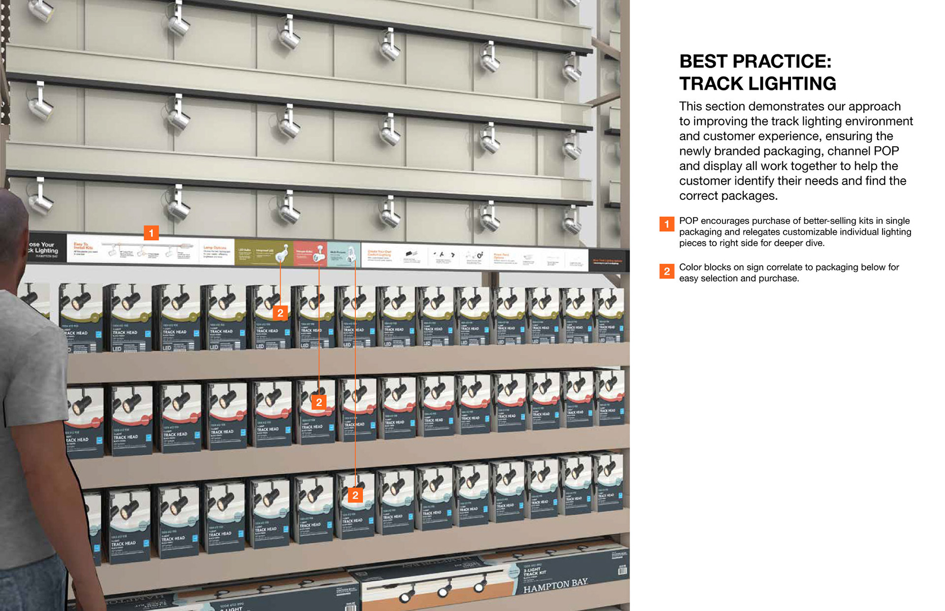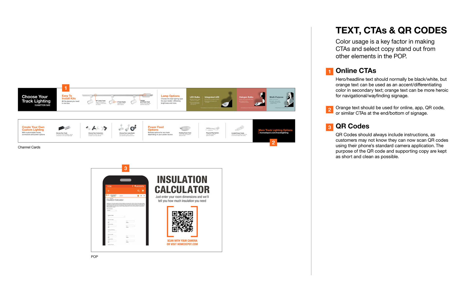 We made a specific choice to deploy the color orange in the store almost always as a navigation tool. Orange is the brand color but it's also the color that represents direct customer assistance. If you see the color orange in a Home Depot store, it is almost always directing you to where you need to go., both on and offline.